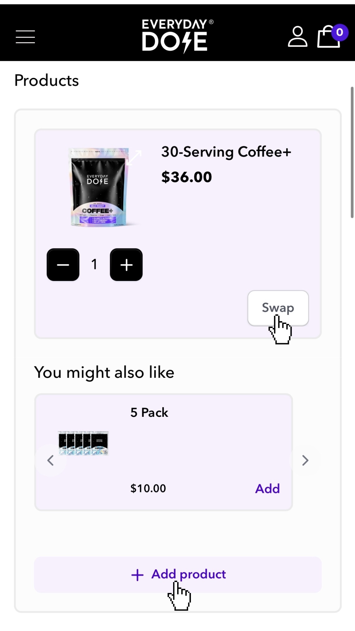 If you’d like to switch your main product, such as changing from Coffee to Matcha, click 'Swap' on the product box and select your new option.